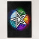 Künstlich gezeichnet, leuchtendes Pentagramm mit fünf magischen Elementen, Wasser, Erde, Feuer, Astral, Luft auf schwarzem Hintergrund. Wiccan Pentagram. Wicca