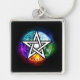 Künstlich gezeichnet, leuchtendes Pentagramm mit fünf magischen Elementen, Wasser, Erde, Feuer, Astral, Luft auf schwarzem Hintergrund. Wiccan Pentagram. Wicca