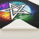 Künstlich gezeichnet, leuchtendes Pentagramm mit fünf magischen Elementen, Wasser, Erde, Feuer, Astral, Luft auf schwarzem Hintergrund. Wiccan Pentagram. Wicca