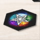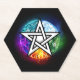 Künstlich gezeichnet, leuchtendes Pentagramm mit fünf magischen Elementen, Wasser, Erde, Feuer, Astral, Luft auf schwarzem Hintergrund. Wiccan Pentagram. Wicca