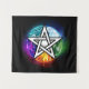 Künstlich gezeichnet, leuchtendes Pentagramm mit fünf magischen Elementen, Wasser, Erde, Feuer, Astral, Luft auf schwarzem Hintergrund. Wiccan Pentagram. Wicca