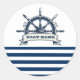 Dieses Bild zeigt ein Boot-Rad, einen Anker auf einem marineblau-blauen und weißen Hintergrund.