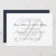 Unsere eleganten, traditionsreichen Hochzeitsdinner oder Cocktail-Party Einladungen bieten den bald gemeinsam genutzten Erstauftritt in einem hellblau-grauen Wasserzeichen-Stil. Personalisieren Sie mit Ihrer Zeremonie Probe und Probe Dinner Details, überlagert auf dem Monogramm in klassisch marineblau kalligraphische Skript und Serifenschrift. Enthält Platz für den Zeitpunkt der Probe und die Kirche- oder Veranstaltungsadresse. Ein formelles und dennoch einfaches Design für schicke Paare mit klassischem, raffiniertem Stil.