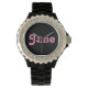 Uhr, Klassische Damenuhr mit schwarzen Lederarmband
