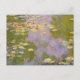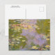 Eine Postkarte mit dem Gemälde Water Lilies (1919) des französischen Impressionisten Claude Monet (1840-1926). Eine panoramische Landschaft von einem Liliensee mit rosa Wasser liegt auf Lavendel hued Wasser.