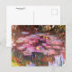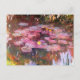 Eine schöne Kunstpostkarte mit dem Landschaftsimpressionisten Gemälde Water Lilies (1917) von Claude Monet (1840-1926). Ein Teich mit rosa gefärbten Lilienpolstern mit gelben Blumen. Monet produzierte viele Gemälde von Wasserlililien aus seinen eigenen Gärten in Giverny, Frankreich.