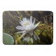 Eine weiße Wasserlilie blüht sanft auf der Oberfläche des Wassers, ihre Blätter breiten sich offen aus, um die gelben Flecken im Inneren zu zeigen. Unterwasser, Stiele und Algen können im klaren Wasser gesehen werden, was einen reichen Lebensraum für Wasserlebewesen bietet.
