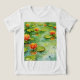 The painting depicts a green, quiet pond with blooming water lilies in orange and yellow.