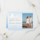 Blue watercolor depiction of the water meeting the sky. Custom monogram with sailboat. Photo template via Pixabay licensed under CC0 and must be replaced with your own photo