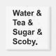 Ein Magnet mit den Kombucha-Zutaten: Wasser, Tee, Zucker, Scoby. Originelles Design.