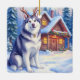 Watercolor Alaskan Malamute Reindeer Christmas Keramikornament