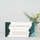 Modernes, elegantes Geschenkzertifikat mit Aquamariner Wasserfarbe und Goldmarmor Agate Geode.