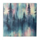 Ceramic Tile - Watercolor-inspired Aurora Borealis sky above a dark pine forest—perfect for nature lovers, winter themes, and atmospheric night-sky themes.