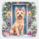 Watercolor Australian Silky Terrier Snowy Doorstep Quadratischer Aufkleber