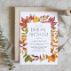 Mit dieser individuell gestaltbaren Brautdusche laden wir Sie zu Ihrer Veranstaltung ein. Es hat einen Aquarellrahmen aus Herbstblättern. Personalisieren Sie diese, indem Sie Ihre Daten hinzufügen. Diese Braudusche in Aquarellfarbe ist ideal für Herbst-Brautpartys.