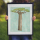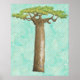Das Aquarell-Poster ist mit einem großen, in Afrika und Australien prominenten Baobab-Baum auf Aquarell/Golddots-Hintergrund ausgestattet