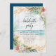 Aquarell Beach Junggeselinnen-Abschied Einladung. Dieses Design besticht durch eine wunderschöne Aquarellsommerstrandszene. In diesem tropischen Design sind Meereswellen, Sand und Blume zu finden.