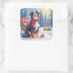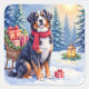 Watercolor Bernese Mountain Dog Sleigh Christmas Quadratischer Aufkleber