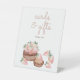 Designed with attention to detail, our pedestal sign features delightful berry-themed graphics that capture the essence of spring / summer sweetness and joy. Coquette pink strawberries adorn a chocolate sweet cake.