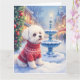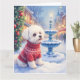 Watercolor Bichon Frise Festive Fountain Christmas Karte