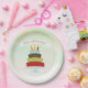 Lovely birthday party design features a watercolor background in yellow and green. In the center is a four layer birthday cake with birthday candles on top. The layers of the birthday cake are in blue, green, red and brown. Above the birthday cake is a white banner with text in red script font where you can add your own message and wording. This is a great birthday party design for both adults and children. Matching postage, return address labels, plates and napkins also available.