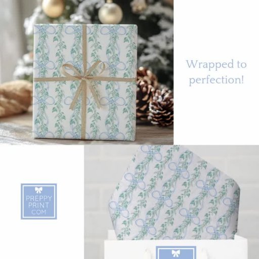 Watercolor Blue Bow Garland Weihnachten Geschenkpapier Set