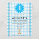 Watercolor Blue Check Koala Birthday Invitation Einladung