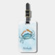 Dieses Kofferraumschild mit dem Thema "Küste" zeigt eine blaue Wasserfarbenkrabbe auf einem Schlag der Ozeanwelle mit einem Namen auf der Vorderseite, auf der die Informationen "Rückkehr, wenn gefunden" auf der Rückseite sind.