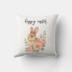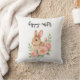 Watercolor Bunnt and Pink Floral Wreath Easter Kissen