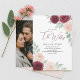 Erleben Sie Ihren besonderen Tag mit dieser eleganten Hochzeitsveranstaltung mit romantischen Rose in Rot und Bordeaux. Dieses Design ist perfekt für eine Hochzeit im Frühjahr oder Sommer geeignet und kombiniert zeitlose Skripte mit klassischen Serif-Schriftart für ein anspruchsvolles Aussehen. Ideal für Gartenhochzeiten, feierliche Feste oder Vintag inspirierte Themen. Passen Sie Ihren Namen, Datum, Ort, QR-Code und mehr an. Auf Premium-Papier gedruckt und vollständig editierbar, um Ihren Stil Anzug.