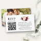 Die moderne Watercolor Burgundy Floral Wedding RSVP Card mit Ihrem QR-Code beinhaltet bordeauxrote Rose, rosa Rosen, rote Rosen und botanisches Grün. Foto zurück.
