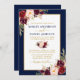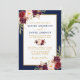 Watercolor Burgundy Floral Gold Blue Wedding Einladung