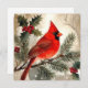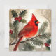 Watercolor Cardinal on Snowy Pine Branch Flat Card