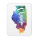 Dieses Design zeigt eine Landkarte des US-Staat Illinois mit der Stadt Chicago mit einer bunten, handbemalten Aquarellstruktur. "Chicago" stilisierter Text wird mit einem Stern überschrieben, um die Lage der Stadt anzuzeigen.