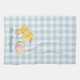 Destei's watercolor baby chick and pastel eggs. The background features a blue gingham pattern with a personalizable text area for a name or other custom text.