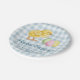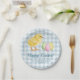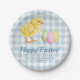 Personalizable Easter party design featuring Destei's watercolor baby chick and pastel eggs on a blue gingham pattern. The design also includes two personalizable text areas: one reads ‘Happy Easter!’ while the other can be personalized with an event name, theme and year. Perfect for spring and Easter celebrations and gatherings.