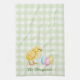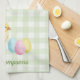 Watercolor Chick And Eggs On Green With Name Geschirrtuch
