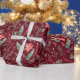Watercolor Grün und Rot Weihnachtsmuster auf einem maronen Hintergrund für die saisonale Geschenkverpackung. Machen Sie Ihre Geschenke noch hübscher in diesem Jahr.