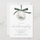 Modern Christmas Party Dinner Invitation Card designed with a Green Watercolor Ornament and Bow.