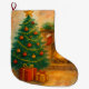 Watercolor Christmas Tree & Cozy Fireplace Holiday Großer Weihnachtsstrumpf