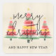 Beautiful watercolor Christmas trees topped with a gold star on ivory background accent these square envelope seal stickers with Merry Christmas and Happy New Year in chic lettering. MATCHING items in our collection.