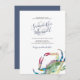 Diese elegante Beachtheaterparty lädt zum Set Ihrer Namen in einer stilvollen, handgeschriebenen Skripttypografie mit Veranstaltungsdetails in einem klassischen kohlegrauen Serif-Schriftart auf knusprigem weißem Hintergrund ein. Meine originelle Aquarellkrabbe in Rottönen, Blues und Grüntönen schmückt die Vorderseite. Die Einladungskarte kehrt zu einer marinebasierten Farbe zurück. Eine schicke und dennoch elegante Wahl für lässige Beachvolleyball-, Wassersport- oder Sommerveranstaltungen am Neuengland. Um meine gesamte Hochzeitssaison zu sehen, besuchen Sie DoTellABelle auf Zazzle.