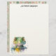 This letterhead combines a crisp white front with a watercolor crocodile and personalized name, and a sage boho geometric striped back. The look is refined yet playful ideal for personal letters, home office stationery, or thoughtful gifts.