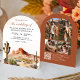 Amaze your guests with this elegant desert theme wedding invite featuring a beautiful rustic desert landscape and modern typography with QR Code for online RSVP. Simply add your event details on this easy-to-use template and adorn this card with your favorite photos to make it a one-of-a-kind invitation.