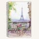 Watercolor Eiffel Tower Paris French Café Notebooks verfügen über einen französisch-französischen Café-Sitzbereich mit Paris und dem Eiffelturm im Hintergrund. Erstellt von Evco Studio www.zazzle.com/store/evcostudio