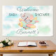 This horizontal banner is special for its charming, soft watercolor illustration of a baby elephant flying a plane among pastel clouds. The light, gender-neutral color palette (mint green, soft blue, peach) and elegant script fonts make it a large, whimsical decorative piece perfect for a baby shower or first birthday with an "Oh Boy" or travel theme.
