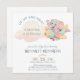 This invitation is special for its charming, soft watercolor illustration of a baby elephant flying an airplane among pastel clouds. The design uses a whimsical "Up Up and Away" theme and a light, soothing color palette. It is perfect for a boy baby shower or first birthday celebration with a travel or adventure theme.