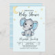 Watercolor Elephant Baby Shower Boy, Blue and Gray Einladung