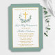 Elegant Watercolor Eucalyptus Leaves Wreath First Holy Communion Invitation. Gold Cross. Gold Frame.