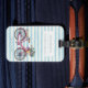 Niedlicher und weiblicher personalisierter Gepäckumbau mit blauen Watercolorpastellstreifen und Fahrrad mit Blumenkorb.